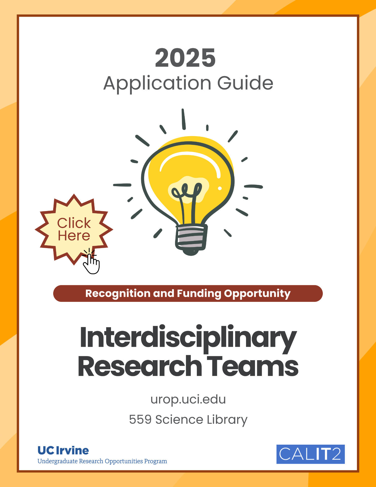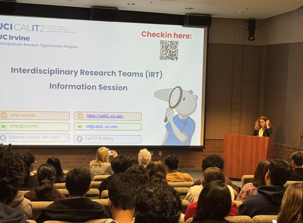 Calit2 is partnering with UROP for the fourth year to support the Interdisciplinary Research Teams (IRT) Program, which connects graduate and undergraduate students to collaborate on interdisciplinary research projects at UCI. Each team typically includes one PhD student mentor and two to four undergraduate students from different disciplines, working under the guidance of a faculty mentor.