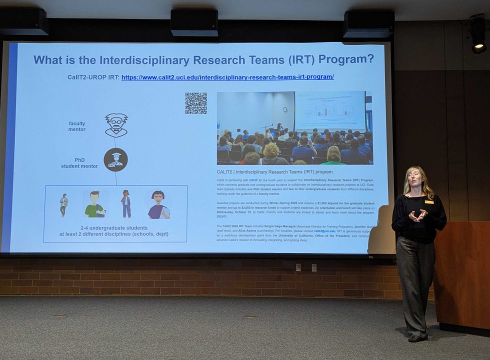 The Calit2 2026 IRT Team includes Sergio Gago-Masagué (Associate Director for Training Programs), Jennifer Garizi (staff lead), and Alise Adams (purchasing). For inquiries, please contact irt@calit2.uci.edu. IRT is generously supported by a workforce development grant from the University of California, Office of the President, and continues to advance Calit2’s mission of innovating, integrating, and igniting ideas.